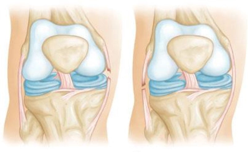 The meniscus can tear from acute trauma or as the result of degenerative changes that happen over time. Tears are noted by how they look, as well as where the tear occurs in the meniscus. Common tears include bucket handle, flap, and radial.